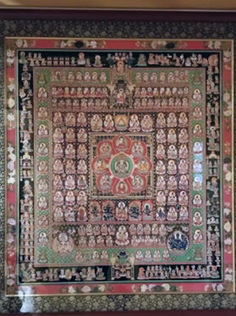 この両界曼荼羅は約3年の歳月をかけ、藤田哲也先生(日本美術院 院友 愛知県立芸術大学 模写制作代表)に制作いただき、令和元年12月完成しました。