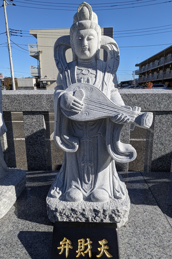 音楽、芸術、学問の神様として知られています。琵琶を奏で、凛々しいお姿です。芸能関係者や学生から特に信仰を集めています。