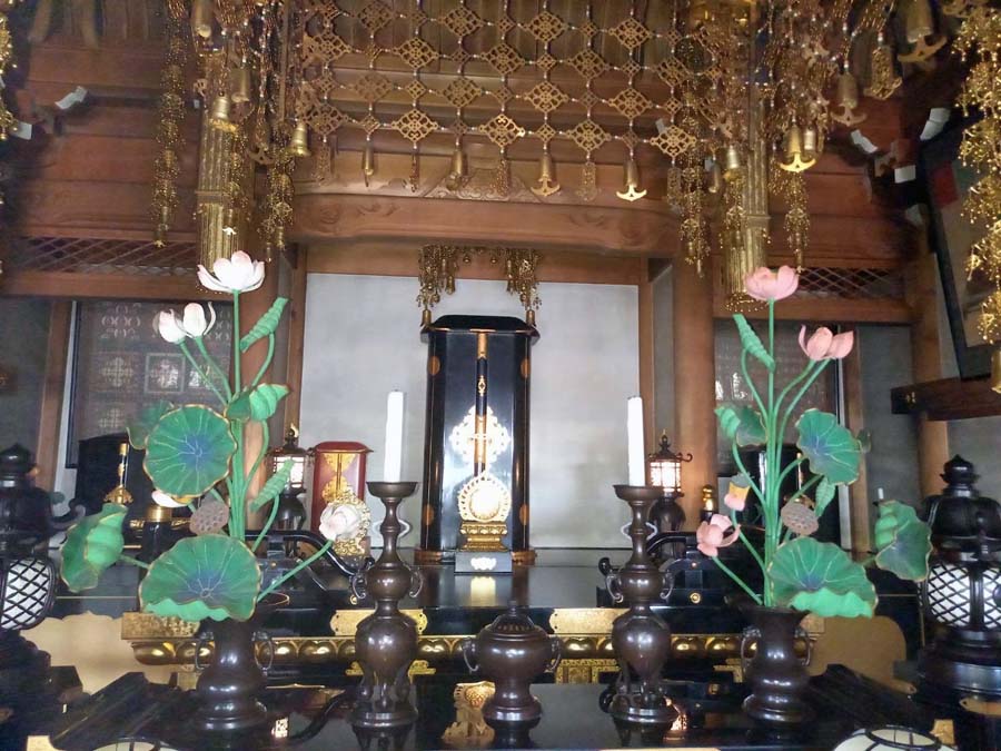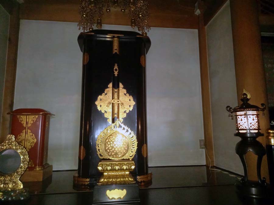 私は本堂須(しゅ)弥壇(みだん)中央にお祀りされているご本尊不動明王にご法事等の折りには亡者の煩悩を払い、み魂(たま)を清らかにして頂きたいと念じます。そして清められた亡者のみ魂を密厳の仏国土(極楽浄土)へとお送りするべく本尊脇士に阿弥陀如来をお祀りしたいと思ったのです。