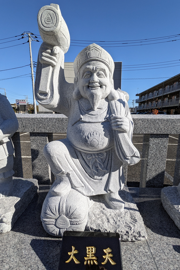 福徳の神様として知られ、大きな袋と槌を持ち、米俵の上に乗っています。家内安全や五穀豊穣など、人々の暮らし全般に福をもたらすと言われています。